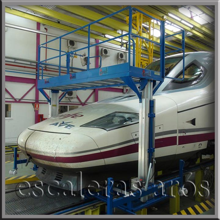 Plataforma de trabajo con altura ajustable.Plataforma de trabajo móvil con altura ajustable, trampilla y mesa sobre vehículo.Plataforma de trabajo móvil con escaleras de acceso.Plataforma de trabajo para mantenimiento.Plataforma de trabajo móvil o fija con protección lateral.Plataforma de trabajo giratoria con pasarela de inclinación ajustable.Escaleras para camiones cisternas a medida, altura regulable a través de manivela con jaula de protección y plataforma de estacionamiento y salida.Escalera para camiones cisterna plegables y transportables.Plataforma de trabajo fijas con doble nivel de trabajo.Puentes de trabajo para mantenimiento, altura regulable electrónicamente o de forma manual.Plataformas de trabajo con puente de paso.Plataforma de trabajo con subida desde escalera con carretilla especial y sistema de frenos para carriles.Plataforma de trabajo para motrices de trenes, con altura regulable.Puente móvil.Pasarelas que se pueden montar sobre estructuras o vehículos fijos.Escalera para cisternas de altura regulable y con desplazamiento sobre carril.Escalera de subida ajustable para locomotoras.Escaleras de acceso con peldaños de rejilla.Puente para alas de avión y plataforma móvil.Estructuras especiales para mantenimiento de aviones y subida hacia el fuselaje.Puente móvil de 2 niveles de trabajo.Sistema de pasarelas con alturas de trabajo variable.Andamios con saliente ideales para la cola de los aviones.Estructuras especiales hechas con andamios especiales con el doble nivel de trabajo que siguen perfectamente la cola o el ala del avión.Escaleras de castillo con plataforma de trabajo y saliente lateral regulable.Escaleras de acceso con jaula de protección.